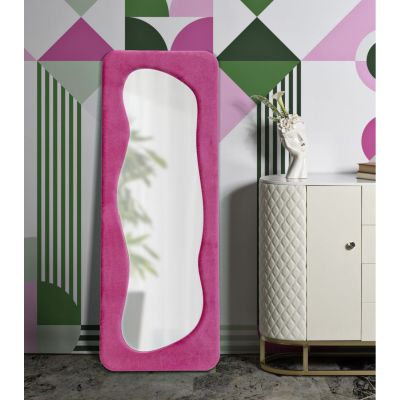 | Descrizione | Specchio da parete con cornice in legno rivestita in velluto fucsia, ideale per un tocco chic e vintage nell'arredamento domestico o in ambienti dal design raffinato. |