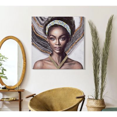 | Descrizione | Dipinto su tela completo di telaio in legno raffigurante un volto di donna completo di eleganti applicazioni in tessuto. |