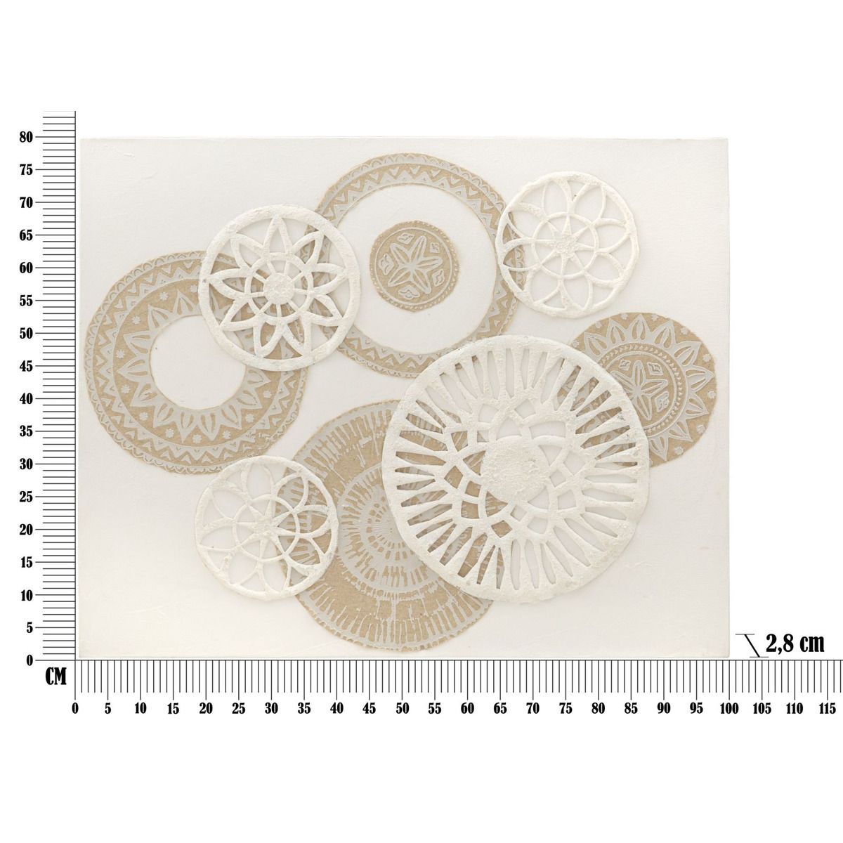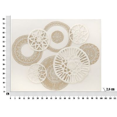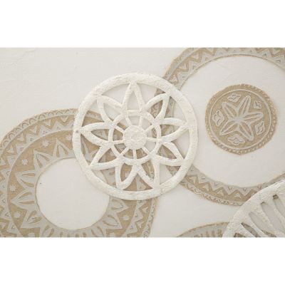 | Descrizione | Dipinto su tela completo di telaio arricchito da eleganti decorazioni in rilievo che formano motivi geometrici dai toni caldi e avvolgenti. |