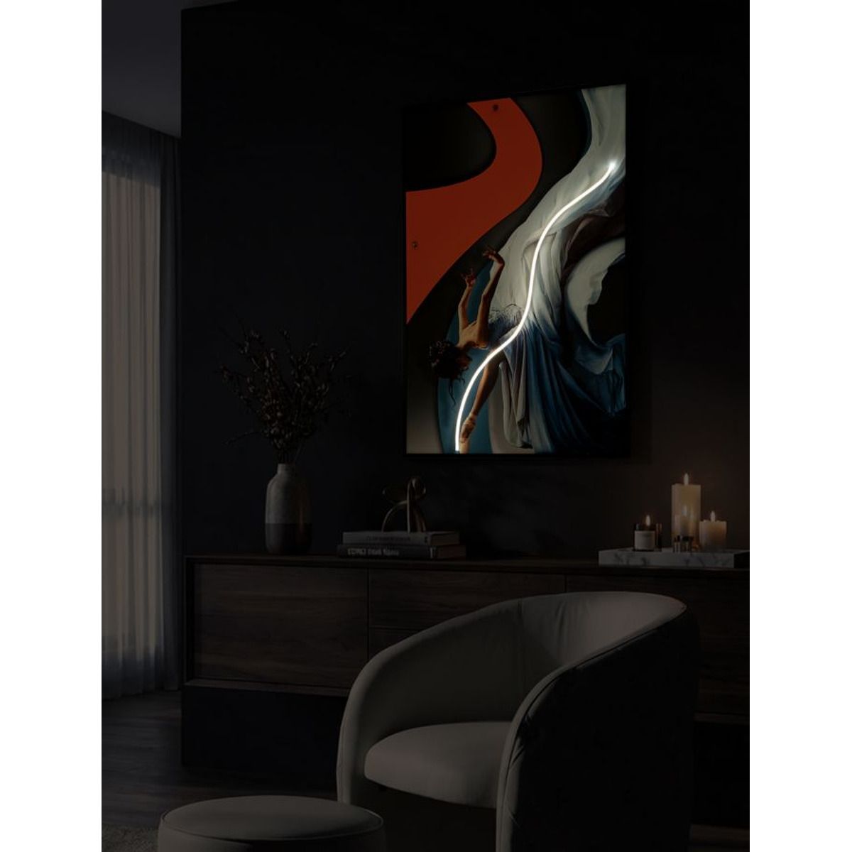 | Descrizione | Una ballerina elegante sospesa in un movimento armonioso, resa ancora più intensa dalla luce LED e dai dettagli tridimensionali. Un quadro che porta dinamismo e raffinatezza. |