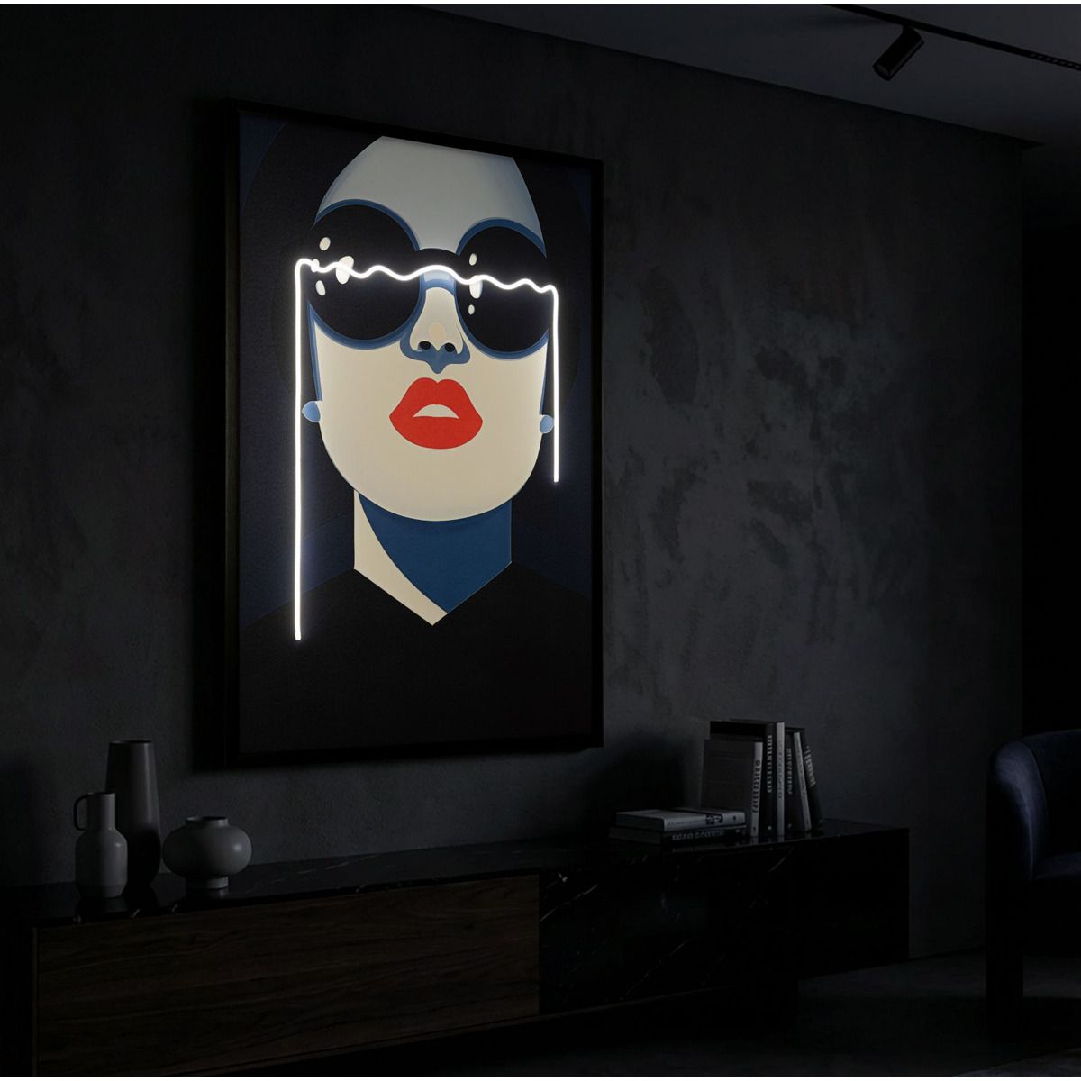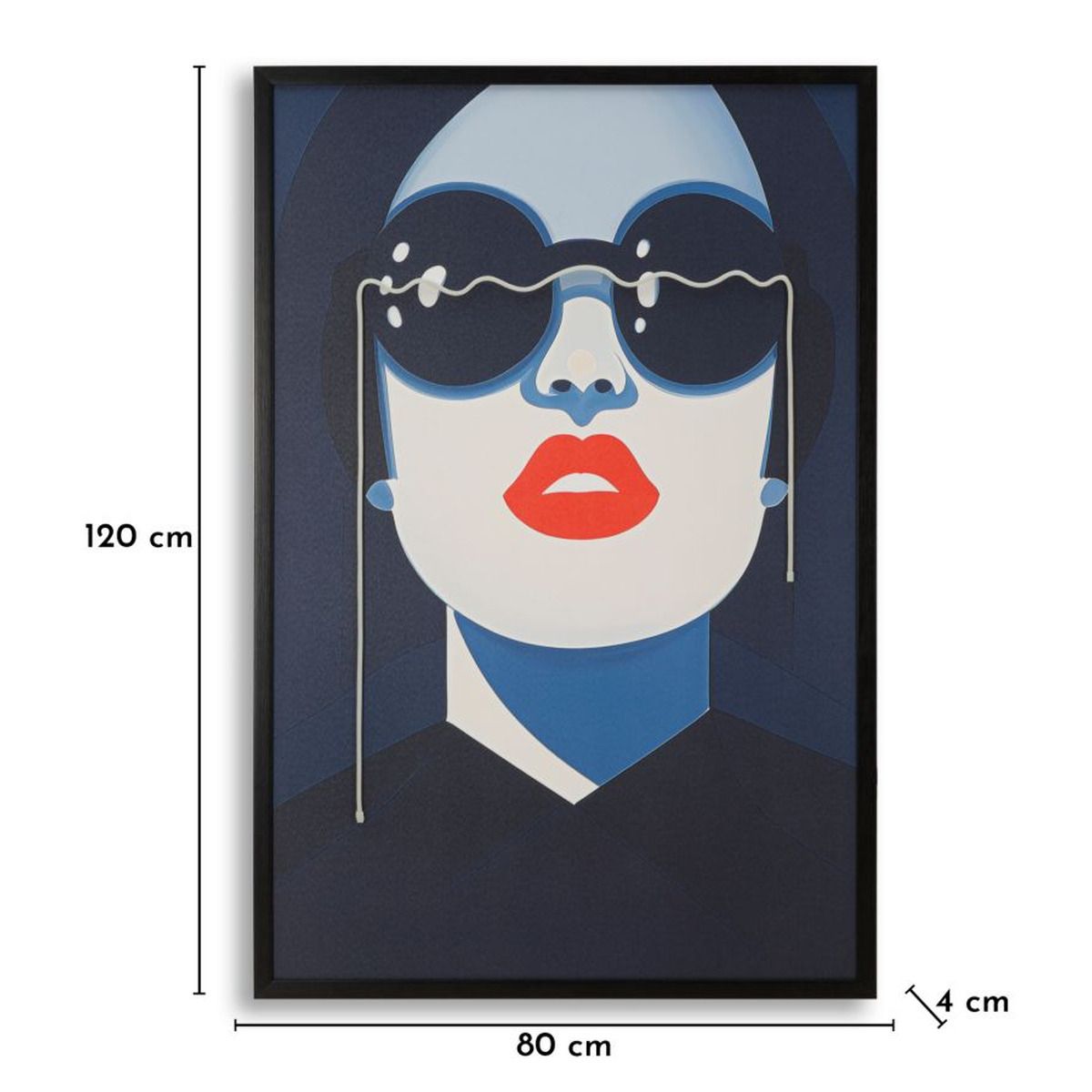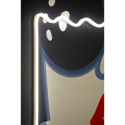 | Descrizione | Un volto femminile pop e accattivante, dove i LED valorizzano il contrasto tra rosso e blu. Un'opera di grande carattere che dona un tocco urban-chic. |