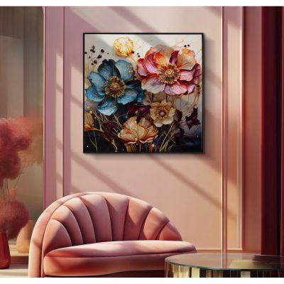 | Descrizione | Dipinto su tela completo di telaio in legno e cornice in metallo nero, con vibranti fiori multicolori perfetti per illuminare qualsiasi ambiente con freschezza e vitalità. Con applicazioni in rilievo. |