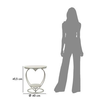 | Descrizione | Tavolinetto Heart argento, con raffinata struttura a cuore e piani effetto marmo. Ideale per decorare con stile ambienti moderni e luminosi. |