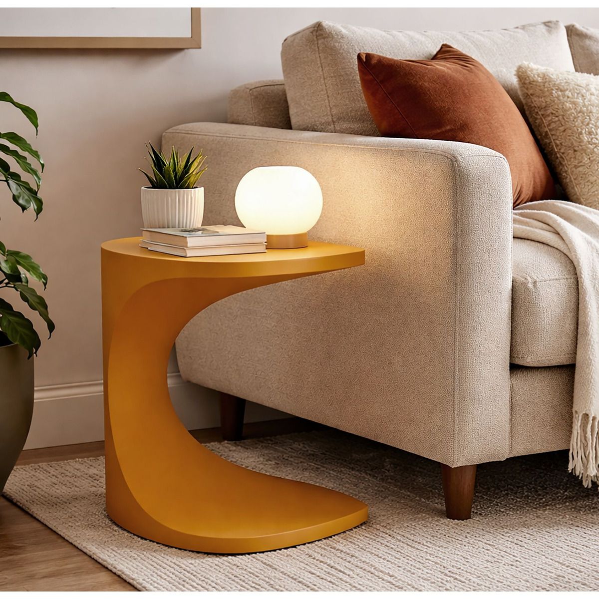 | Descrizione | Un piccolo elemento d'arredo dal design deciso e versatile. Questo tavolino unisce praticità e stile con una tonalità calda e solare che illumina lo spazio. |