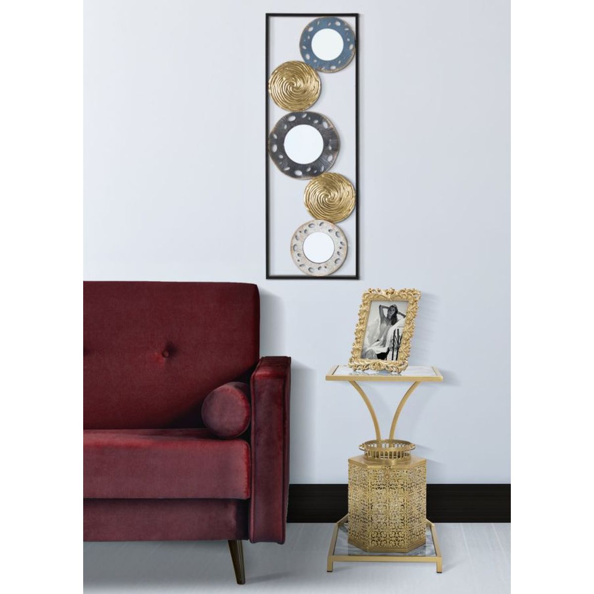 | Descrizione | Tavolinetto quadrato in metallo dorato con top e ripiano in marmo. Il design geometrico semplice ma deciso dona un tocco di particolarità ad ogni ambiente. |