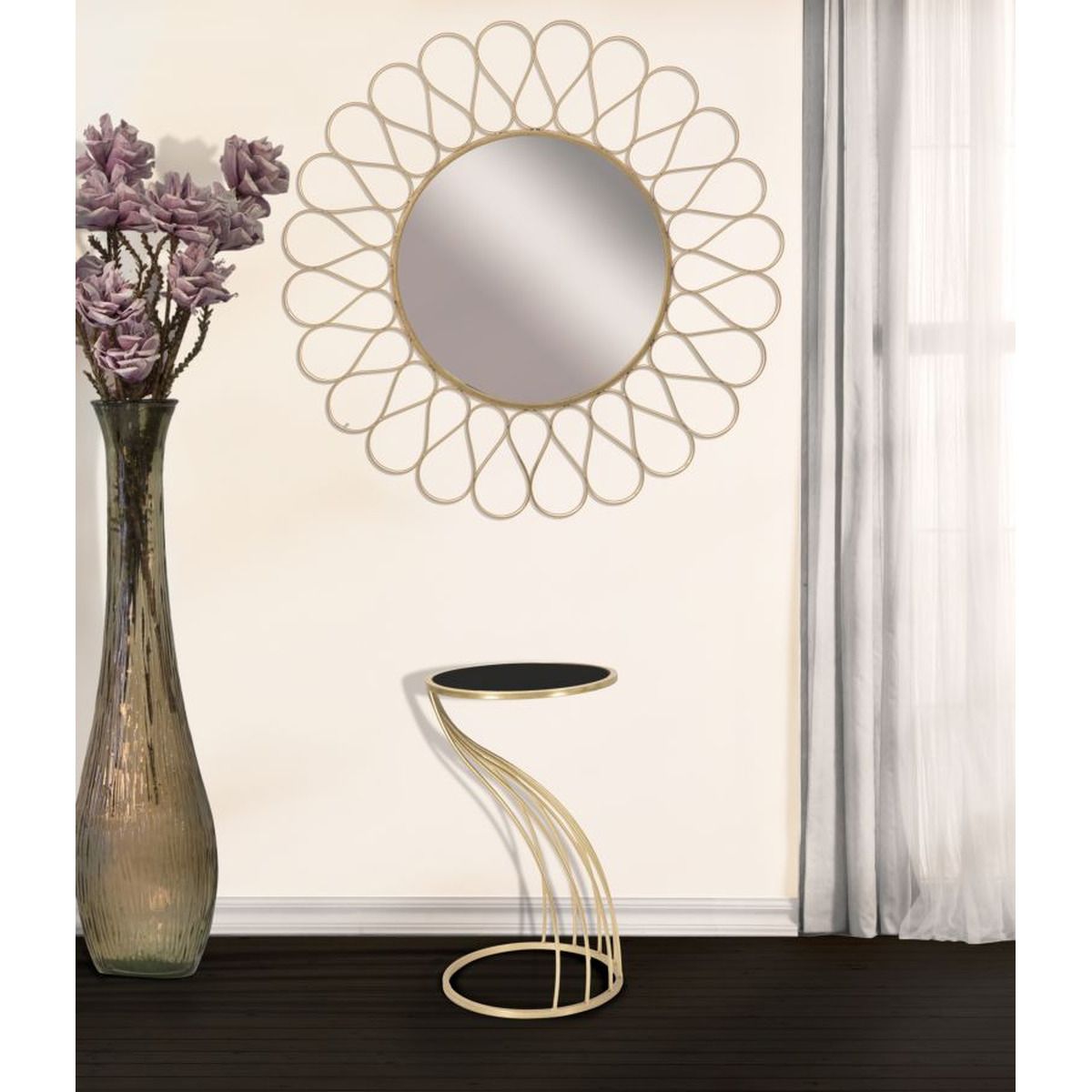 | Descrizione | Tavolinetto portatelefono in metallo e vetro dalle linee sinuose e accattivanti. Il dorato abbinato al nero crea un forte impatto. Un elemento lussuoso e glam per la tua casa. |
