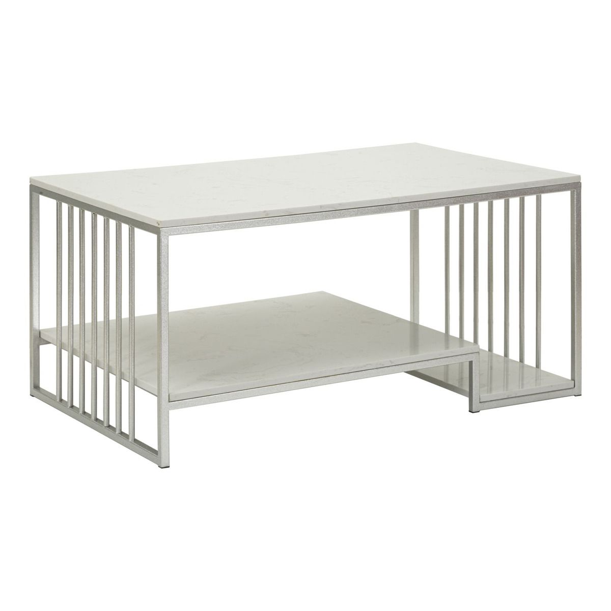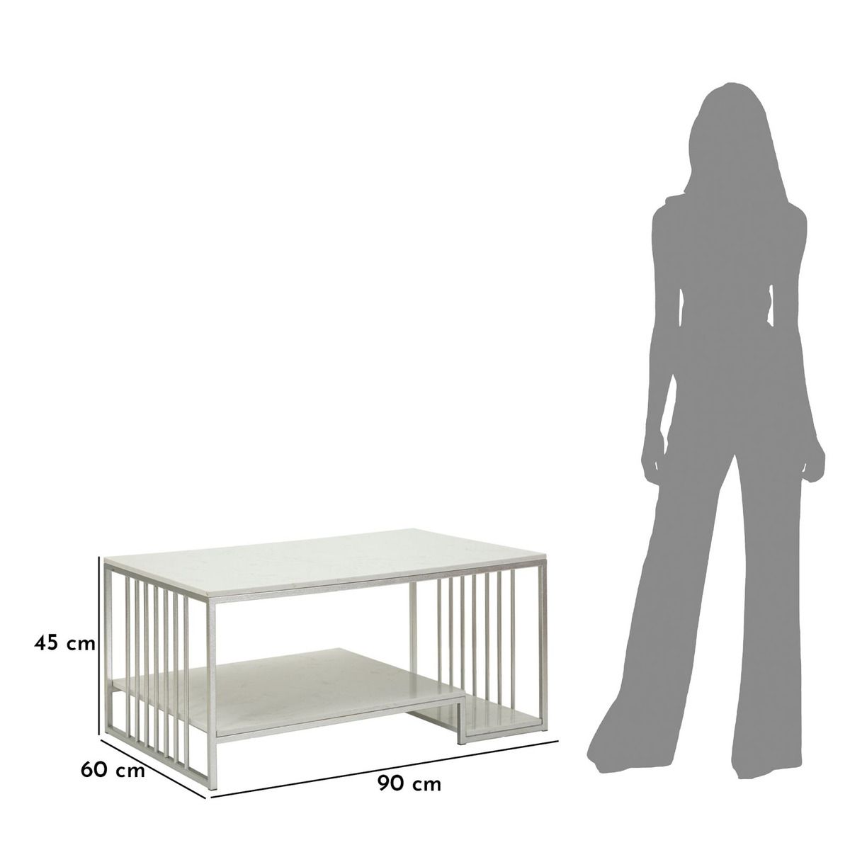 | Descrizione | Tavolo da caffè Kayseri, struttura moderna in metallo silver con doppio piano effetto marmo. Elegante e versatile, ideale per salotti contemporanei. |