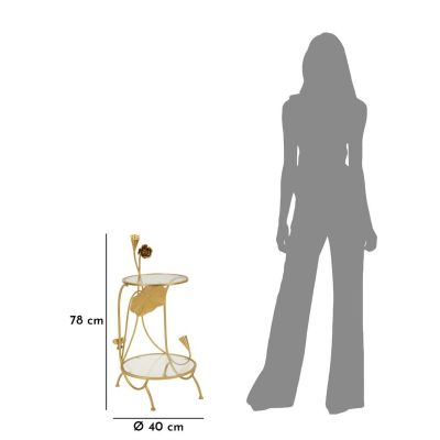 | Descrizione | Tavolinetto 2 ripiani Flowers, struttura dorata decorata con dettagli floreali e doppi ripiani effetto marmo. Eleganza romantica per ogni spazio. |