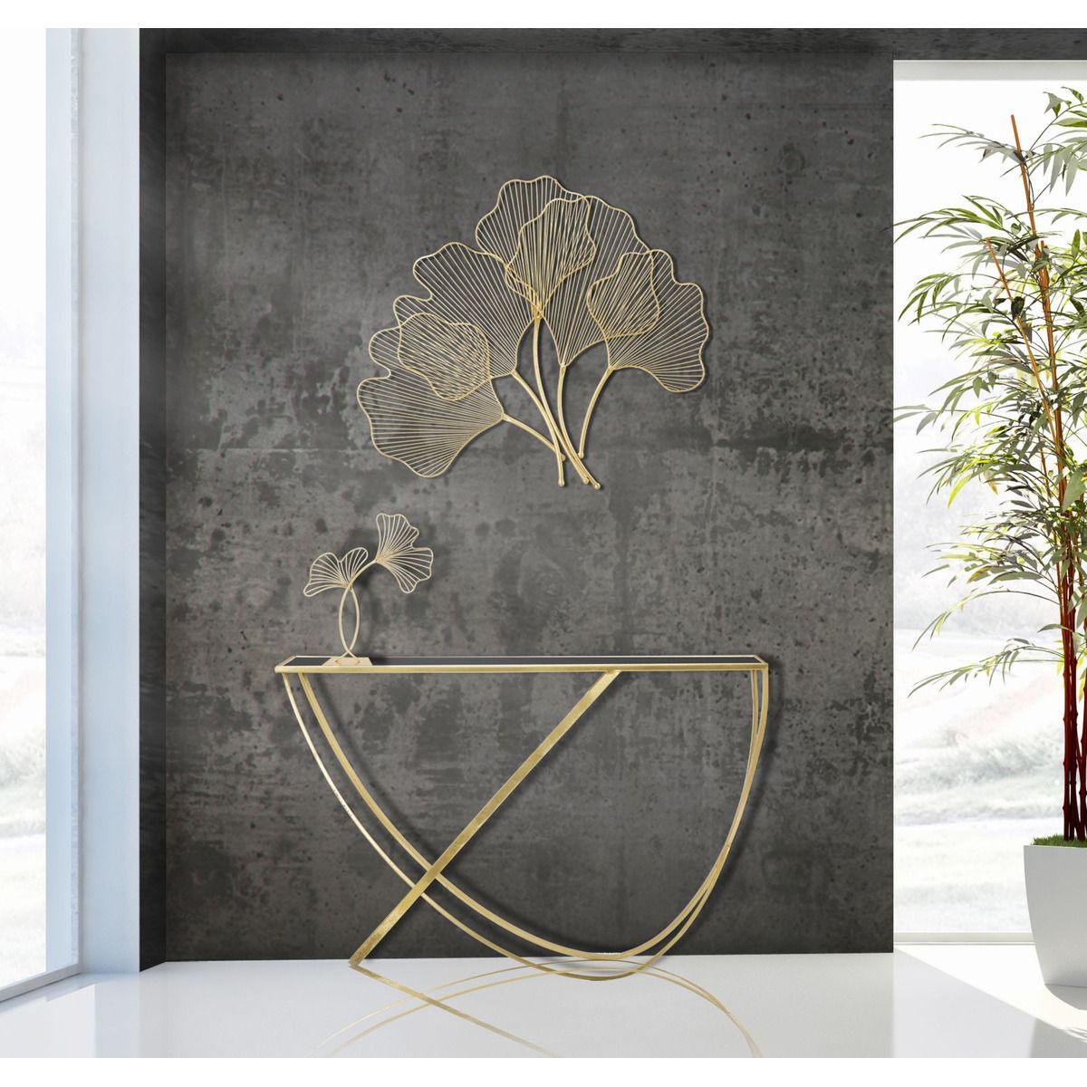 | Descrizione | Console in metallo e vetro dalle linee sinuose e accattivanti. Il dorato abbinato al nero crea un forte impatto. Un elemento lussuoso e glam per la tua casa. |