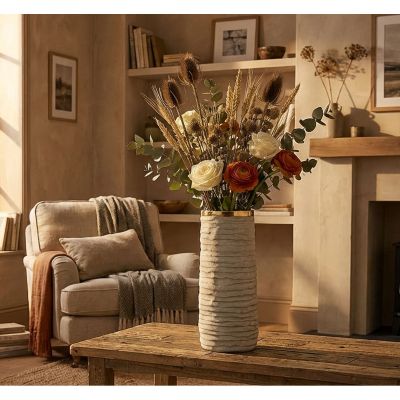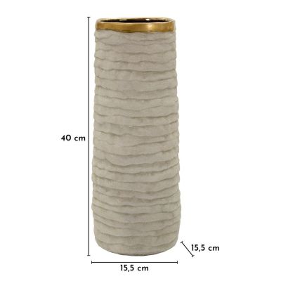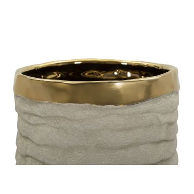| Descrizione | Un vaso cilindrico con apertura ampia e finitura naturale, arricchito da un interno dorato luminoso. Perfetto per creare giochi di luce raffinati. |