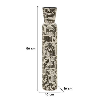 | Descrizione | Slanciato ed elegante, con grafismi neri che richiamano motivi tribali. Un vaso che unisce design moderno e suggestioni etniche, ideale per ambienti sofisticati. |