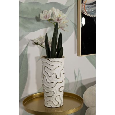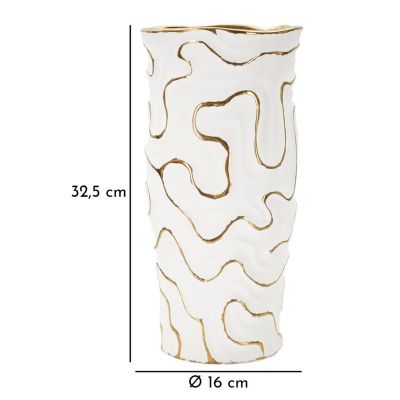 | Descrizione | Vaso in ceramica bianca con eleganti linee dorate, ideale per un tocco raffinato e contemporaneo nell'arredamento. |
